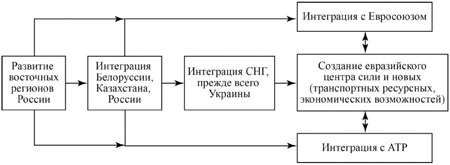 Необходимо признать, что евразийская стратегия России должна исходить из необходимости создания единой системы безопасности и сотрудничества от Великобритании до Дальнего Востока и Юго-Восточной и Южной Азии. Такая концепция предполагает, что чем сильнее и прочнее будут отношения России со странами Евросоюза и АТР, тем крепче будет ее безопасность и гарантированнее суверенитет.