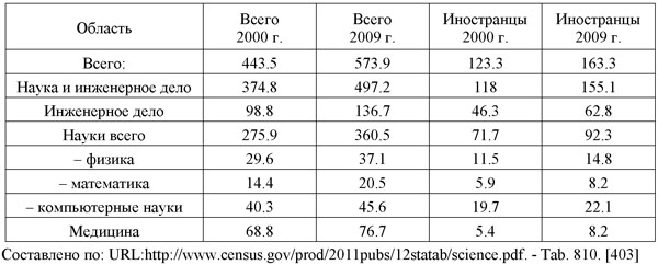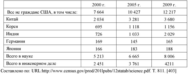 В 1995 г. 15% ученых и 17% инженеров, работающих в США, были неамериканского происхождения. Эти цифры существенно превышали общую долю иностранцев среди работающего населения США - она равна лишь 10%.