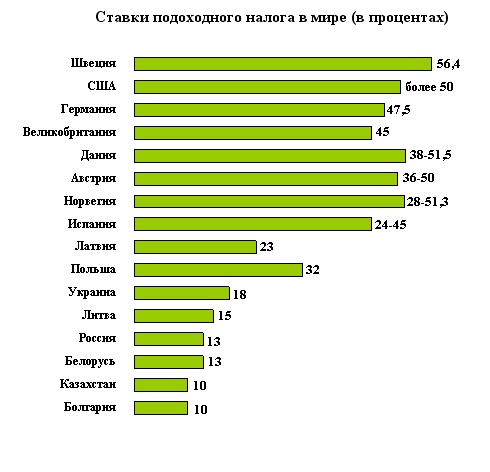На рисунке 1 показаны ставки НДФЛ (в процентах) в некоторых странах мира.
