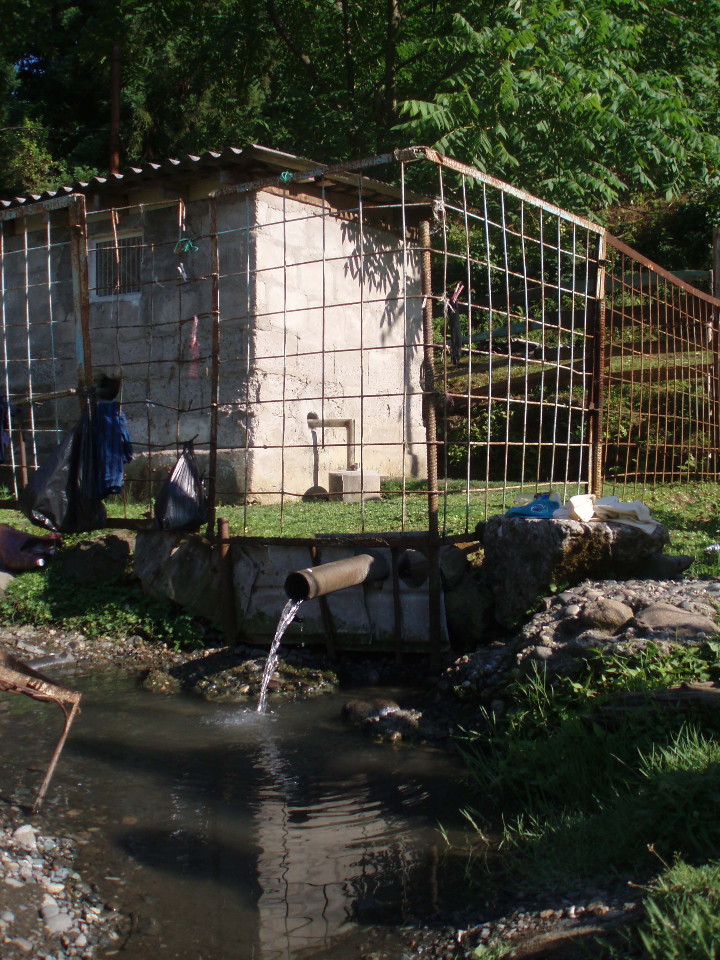 "Серный источник имеет вид двух сообщающихся между собою бассейнов. Самая большая глубина около полутора аршин. Температура пробы (13 авг. 1913 г. 3 часа дня) 20,5° С. при температуре воздуха 22,5° С. Серные ключи в количестве 7 - 8 вытекают из конгломератового авгитового порфирита. Для исследования радиоактивности воды проба взята в самой глубокой части бассейнов на расстоянии четверти аршин от дна. Определение, произведенное тотчас, дало следующие результаты: присутствие эманации радия вызывало падение заряда в размере 138 в. в час, что соответствуете 1,74 ед. Махе. Радиоактивность пробы воды из ванны равнялась 1,26 ед. Махе. Исследование пробы воды через 25 дней дало 0,36 ед. Махе... Торий не обнаружен. Обломки горной породы со дна бассейна обладают радиоактивностью в сухом виде на 125 гр. - 0,13 ед. Махе. Глина вблизи источника на 125 гр. - 0,24 ед. Махе. Химический анализ пробы воды из крана, 5 июля 1909 г., произведенный И. Купцис в Тифлисе, дал в 1 литр всего 0,2020 гр. Свободного сероводорода 0,5 кб. см. Азотной, азотистой кислоты, аммиака и серноватистых соединений не обнаружено.