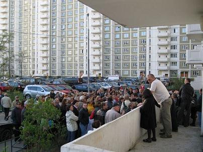 Понятное дело, главный побудительный мотив всей этой истории - деньги. Некие застройщики выиграли конкурс, им дали денег, скорее всего они вернули откатом нехилую сумму и уже потирают руки. Но жильцы в количестве более полутора тысяч человек восстали, как Болотная против Чурова. Начались стихийные митинги, которые организовал, как вы правильно догадались, Госдеп. Глава управы был вынужден приехать объясняться c "либерастами". Нас этим словом в Управе уже обозвали.