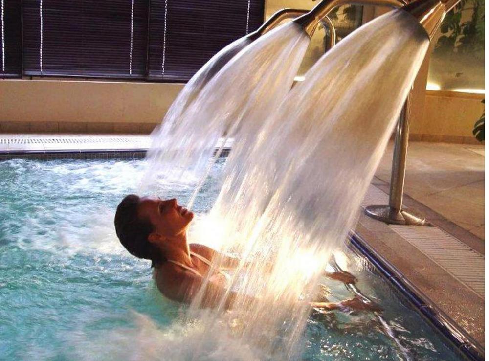 Гидро-бассейны с нежными массажными струями и температурой воды в 38 градусов, 14 процедурных кабинетов, сауны (паровые и финские), кровать в виде подогреваемого камня.