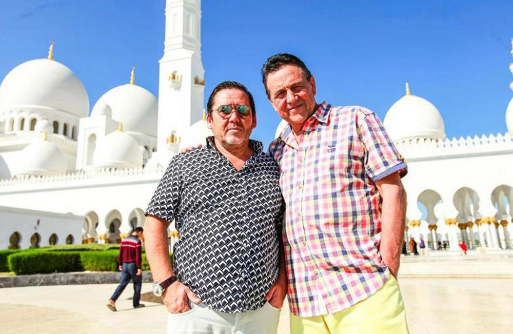 Исмагил Шангареев и Ренат Ибрагимов на фоне Белой мечети Шейха Зайда.