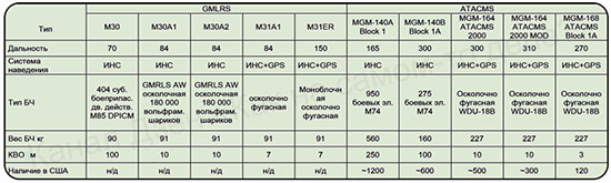 И обе эти ракетные системы могут применять оба семейства ракет и 9” GMLRS и 24” ATACMS. Может нести 2 блока по 6 ТПК М-39 с ракетами M30/31 дальностью 84 км в каждом, или 2 ТПК M-48, M-57 по 1 ракете MGM-140/164/168 дальностью 300 км. Может нести блок с 6-ю ТПК М-39 с ракетами M30/31 дальностью 84 км в каждом, или 1 ТПК M-48, M-57 с ракетой MGM-140/164/168 дальностью 300 км.
