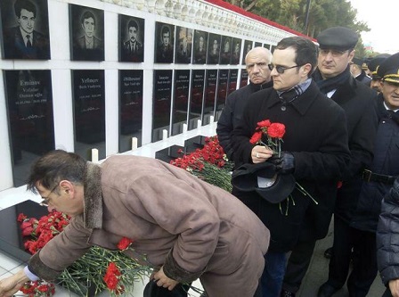 возложили цветы на могилы шехидов.