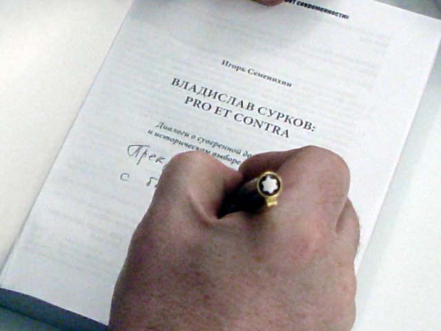 ( О презентации книги Игоря Семенихина "Владислав Сурков: Pro et Contra Диалоги о суверенной демократии и историческом выборе новой России в Центральном доме журналиста)