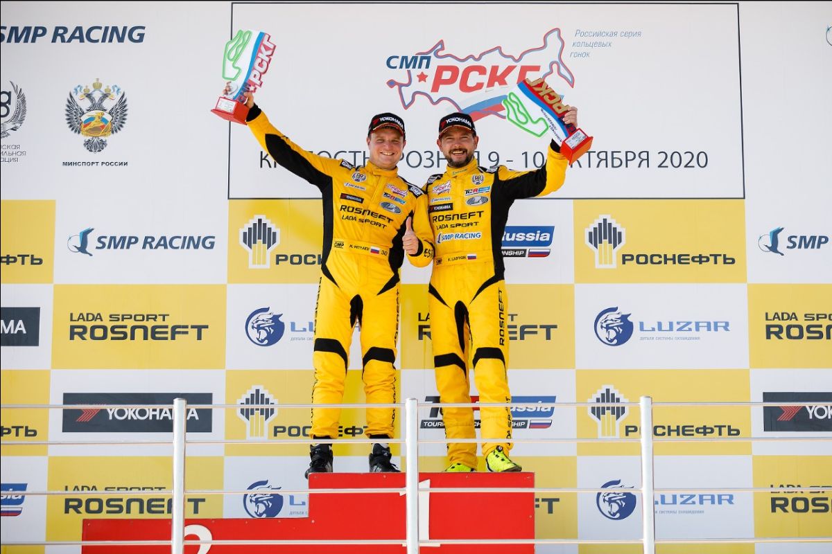Настоящая война на трассе развернулась во время заездов класса «Супер-Продакшн». По итогам квалификации три лучших времени показали пилоты, выступающие за рулем LADA Vesta 1.6T. Владислав Незванкин, заработавший поул, уверенно реализовал его в первой гонке, тогда как основной соперник Вадим Антипов из Нижнего Новгорода сошел с дистанции из-за собственной ошибки. Таким образом, уже после первой гонки этапа Незванкин возглавил турнирную таблицу. А потом была вторая гонка, на старте которой одна из машин главных соперников LADA Sport ROSNEFT по сезону ударила автомобиль лидера Кубка России. К счастью, LADA Vesta 1.6T выдержала мощнейший удар в боковую часть и даже с повреждениями Владислав Незванкин сумел завершить заезд, впервые став чемпионом в «Супер-Продакшн». Машина напарника Андрея Петухова пострадала в еще более жестком столкновении все с теми же основными соперниками по чемпионату, но, к счастью, незадолго до инцидента и схода с дистанции пилот LADA Sport ROSNEFT сумел показать лучшее время круга, за которое согласно правилам соревнований начисляются очки. И лишь они помогли тольяттинцам забрать не только личный, но и командный кубок по итогам всего сезона.