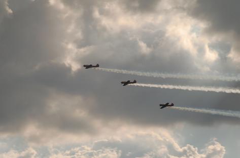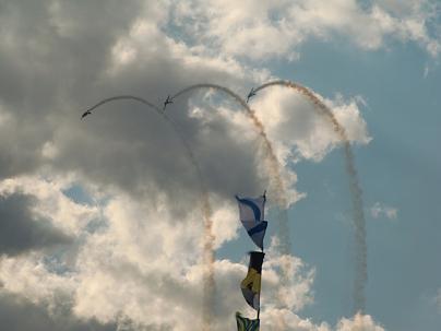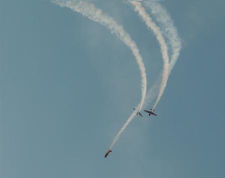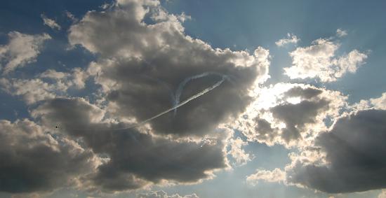 Летчики демонстрировали фигуры высшего пилотажа, названия коих не специалисту и назвать-то сложно. Но сердце замирало в груди, глядя, как самолеты идут лоб в лоб, или вертикально падают вниз. Зрители ахали, кричали, аплодировали, а летчики, признавались зрителям в любви - рисуя в высоком небе сердечки.