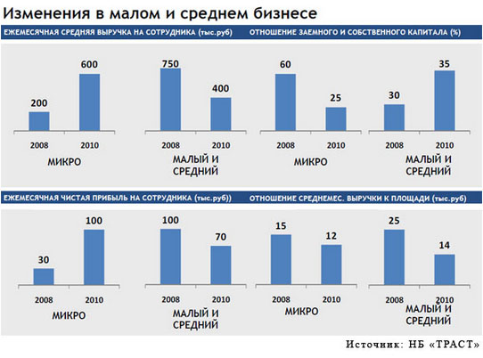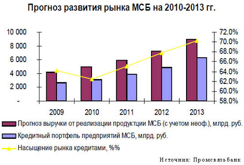 Также можно говорить о том, что финансовые средства снова доступны для МСБ. Вторая половина 2009 года и начало 2010 года стали периодом возвращения финансирования на рынке: банки постепенно возобновили кредитование при сохранении консервативного подхода к оценке потенциальных заемщиков, отметил Константин Басманов, старший вице-президент Промсвязьбанка. Последними тенденциями стали постепенное смягчение условий предоставления кредитов при сохранении моратория на кредитование ряда отраслей (транспорт, строительство, производство и торговля строительными материалами, премиум-сегмента), снижение процентных ставок (Промсвязьбанк за второе полугодие 2009 г. снижал ставки трижды), увеличение сроков кредитования. Во второй половине 2010 года, по прогнозам г-на Басманова, ожидается рост объемов кредитования при падении маржинального дохода, увеличение спроса на инвестиционное кредитование, увеличение продуктового предложения коммерческих банков.