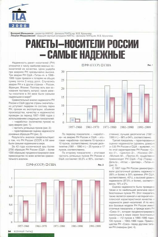 Меньшиков В.А., Медушевский Л.С. Ракеты-носители России – самые надежные. Журнал «Военный парад», № 3 (№ 39), 2000 г.