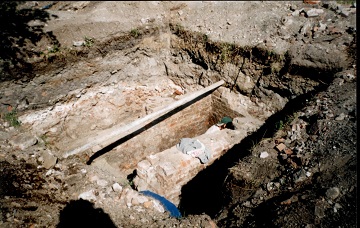Рис. 1. Техногенные отложения Челябинска. Кирпичная кладка середины 18 века под более поздними техногенными отложениями