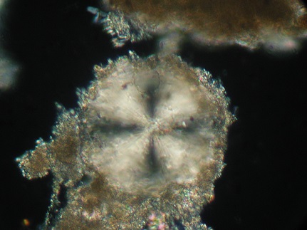 Рис. 5. Сферолит арагонита. Микрофотография. Ув. 100 крат. Поляризованный свет