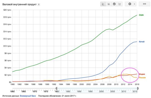 Иными словами, за 30 лет промышленность развитых стран выросла на 30–150% процентов, в то время как в России она только вышла на уровень 1990 года.
