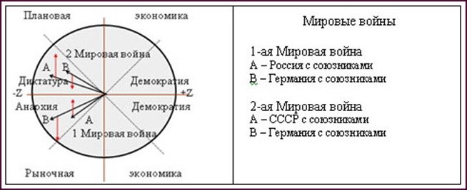 Так как в основу диаграммы положен основной закон философии - Закон борьбы и единства противоположностей, то из этого закона следует, что мирных путей в окрестности оси -Z не существует.