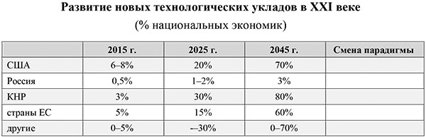 – в-третьих, новый уклад станет преобладающим в долгосрочной и решающим уже в среднесрочной перспективах, т.е. результат соревнования ЛЧЦ будет решен к 2030 году;