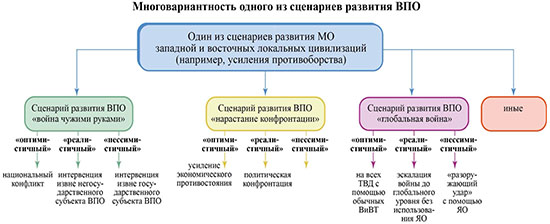 Наконец, очень важно понимать, что любой сценарий развития ВПО предполагает в последующем многовариантность и возможность реализации самых неожиданных вариантов. Это положение можно продемонстрировать упрощенно на следующем рисунке.