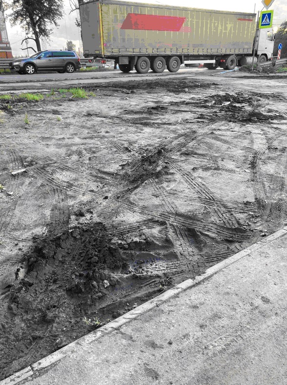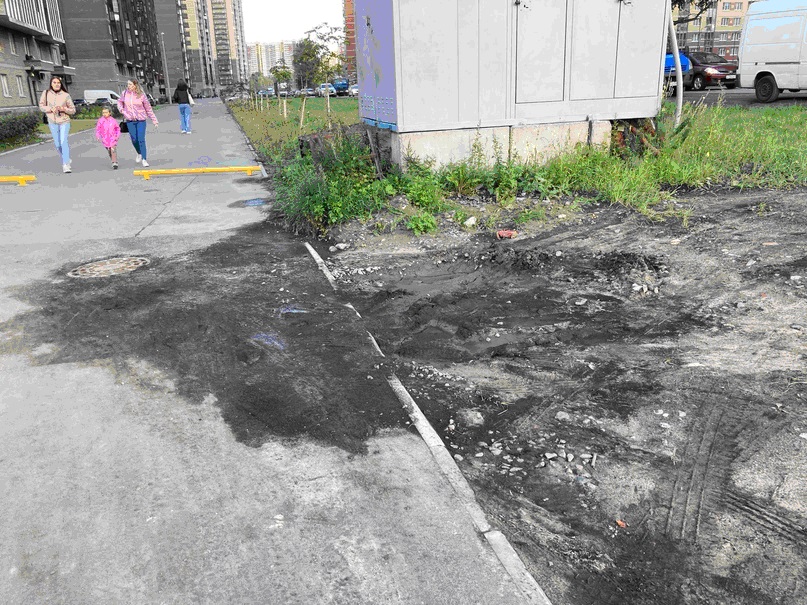 «Советский проспект, 12. Территория не подведомственна УК, уже выяснили, что земля принадлежит городу (даже не МО). Участок сначала измочалили грузовики «Пятёрочки», потом добили автомобилисты. Просим уже год поставить временные ограждения и засеять газон.Письма писали аж губернатору, но спускают сплошныеотписки», - сообщают горожане.