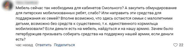 Один из комментаторов предположил, что старую мебель из Смольного отправят в город-побратим Петербурга – Мариуполь. Такая помощь станет для Беглова очередной пиар-акцией.