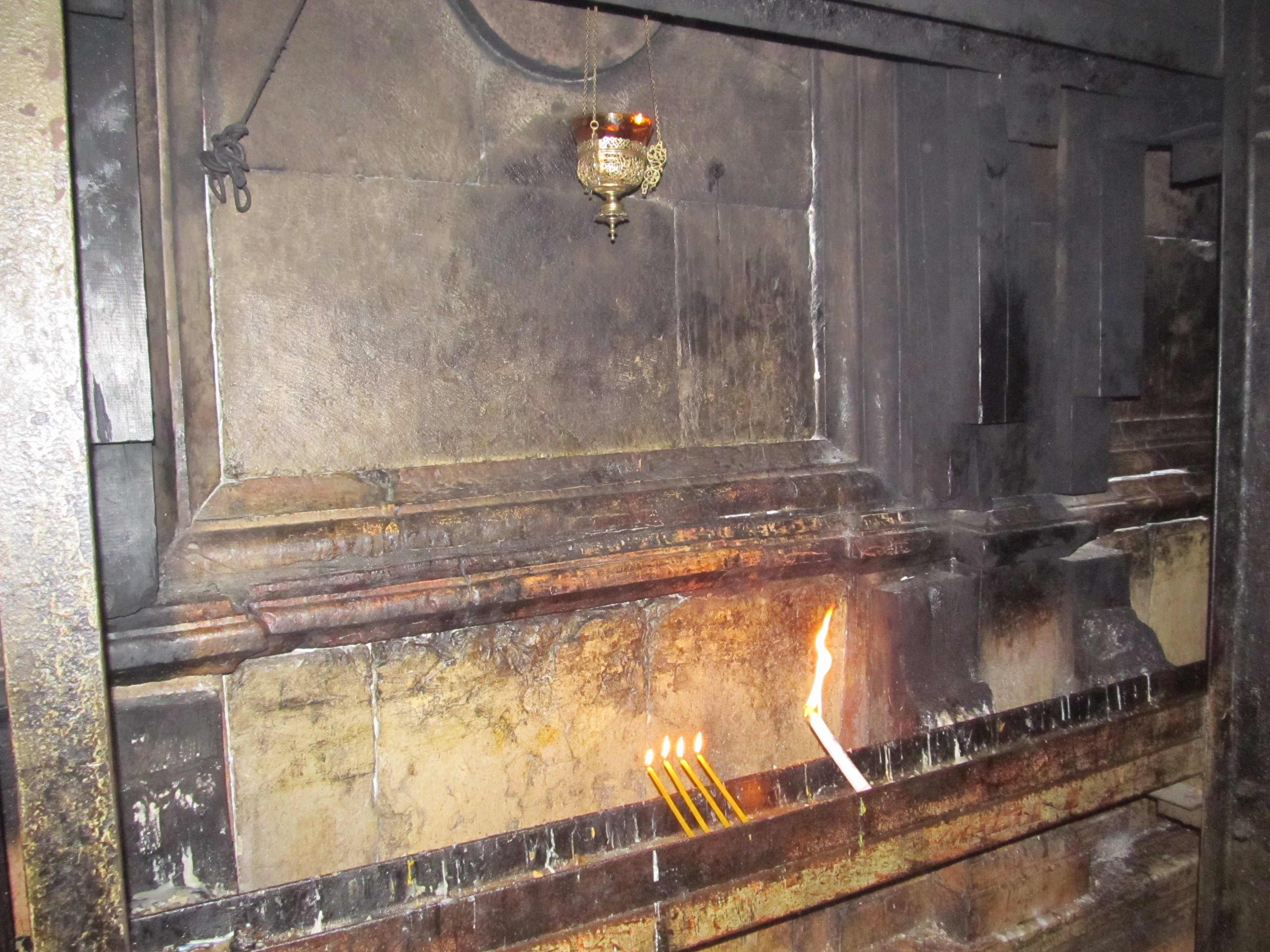 На фото: камень миропомазания и стена часовни Благодатного огня