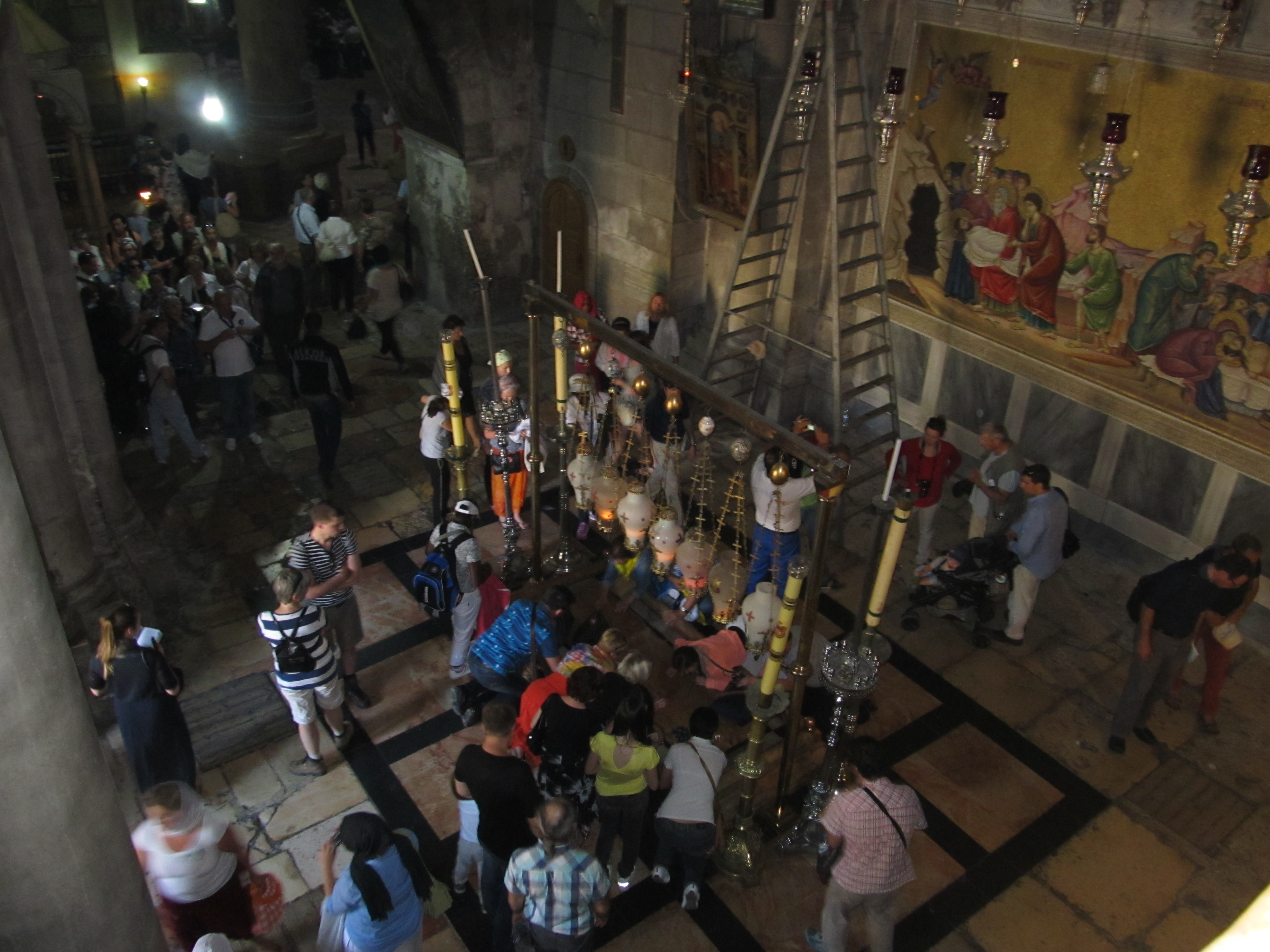Нам рассказывали, что территория Храма разделена между шестью христианскими концессиями: греко-православной, римско-католической, сирийской, коптской, эфиопской и армянской. А ключи от Храма Гроба Господня хранятся в мусульманской семье уже несколько веков, с XII века.