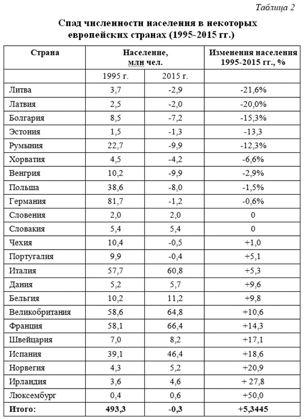 В странах Балтии, Румынии и Болгарии произошло резкое снижение населения. Этот показатель достигал от 10 до 20%. И аналогичные процессы начались в Хорватии, Польше и Венгрии.