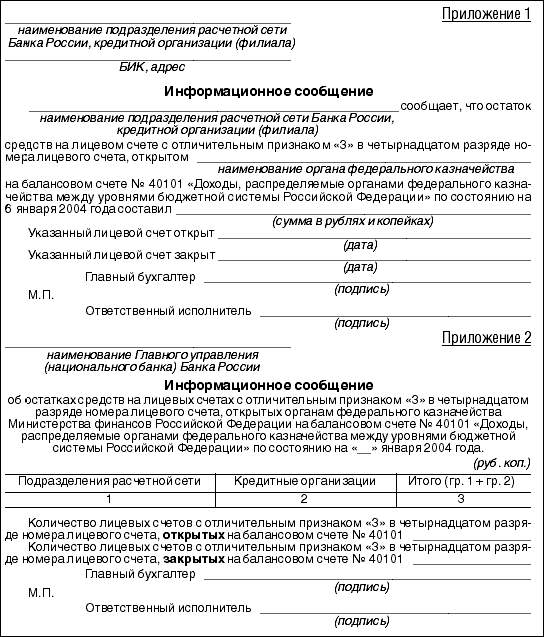 1. 30 декабря 2003 года органы федерального казначейства Министерства финансов Российской Федерации (далее - органы федерального казначейства) на основании полученных от подразделений расчетной сети Банка России и кредитных организаций (филиалов) выписок из лицевых счетов, открытых на балансовом счете N 40101 `Доходы, распределяемые органами федерального казначейства между уровнями бюджетной системы Российской Федерации` (далее - счет N 40101), за 29 декабря 2003 года с приложениями распределяют весь остаток средств на счете N 40101 и направляют в электронном виде или представляют в подразделения расчетной сети Банка России и кредитные организации (филиалы) на бумажном носителе платежные поручения на перечисление указанного остатка средств на счета бюджетов всех уровней бюджетной системы Российской Федерации. Подразделения расчетной сети Банка России и кредитные организации (филиалы) принимают и исполняют эти платежные поручения в тот же день в установленном порядке.