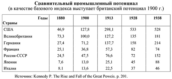 Можно поспорить с Д. Дегтярёвым относительно подбора критериев, в частности абсолютного превалирования экономических показателей, что не является верным, как показывает история человечества, для оценки государственной мощи. В истории нередко происходило и так: государство, обладающее значительно меньшим финансово-экономическим потенциалом, в короткие сроки могло мобилизовать большие возможности. Так, при нападении в 1941 году гитлеровской Германии с союзниками и сателлитами на СССР экономический потенциал нападавших объединял практически всю Европу, включая во многом и ресурсы нейтральных государств. Сегодня трудно дать объективную характеристику совокупной экономической мощи Европы, которая использовалась в 1941–1944 годах Германией. Можно только с уверенностью предположить, что она в 2–3 раза превосходила мощь СССР. Определенное общее представление о соотношении экономических сил между основными державами мира в те годы (без достаточно развитых европейских государств, оккупированных Германией или работающих в её интересах) могут дать следующие данные: