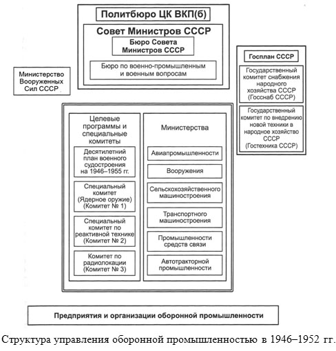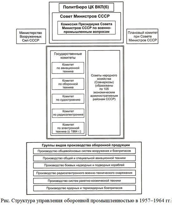 По мере развития военного искусства и ВВСТ во второй полов 50-х – начале 60-х годов постоянно росли требования к ОПК, что вело к изменениям в управлении этими отраслями промышленности. Самые крупные вопросы, как и прежде, решались на уровне Политбюро и Совета министров, где существовала Комиссия Президиума по вопросам ВПК. В этой Комиссии шло основное согласование военно-промышленных вопросов, которое непосредственно транслировалось в министерства (так как вопросы на Комиссии решались на уровне Президиума Совмина, то дальнейшее утверждение носило достаточно оперативный полуформальный характер).