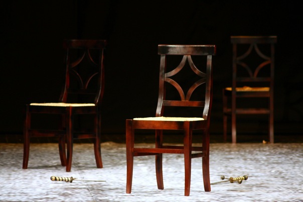 Из декораций - стулья и шпаги. Но декорации здесь не нужны. Абсолютная возможность перевоплотиться и очутиться где-то там, в том времени, о котором рассказывают герои (Испания, 17 век). Я ловила себя на ощущении, что я словно чувствую аромат цветов, я слышу шепот листвы, я чувствую росу на листьях стоя под балконом...