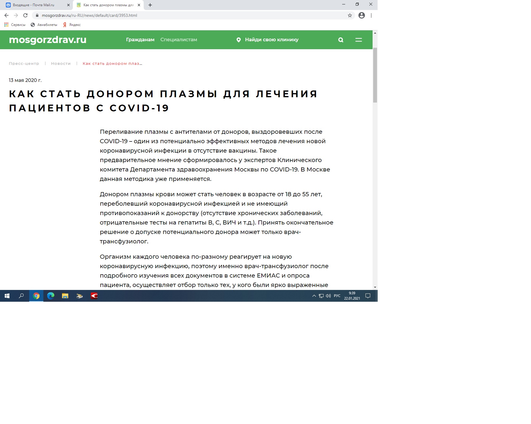 Сдача плазмы переболевшими COVID-19. Также ограничение по возрасту: до 55 лет.