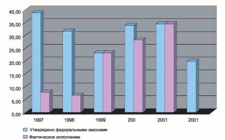 В течение 1997-2000 годов утвержденные федеральными законами о федеральном бюджете на соответствующий год расходы на здравоохранение ни разу не были исполнены в полном объеме.