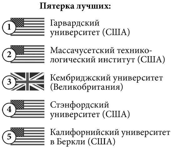 В целом американские университеты, как считают авторы ведущих рейтингов, являются мировыми лидерами не только в науке и образовании, но (подразумевается) и идей, и технологий. В соответствии с рейтингом "Times Higher Education", например, из первой сотни - 44 университетов являются американскими и 10 - Великобритании. В первой сотне появились и китайские, гонконгские, сингапурские, даже турецкие университеты, но ни одного российского[7].