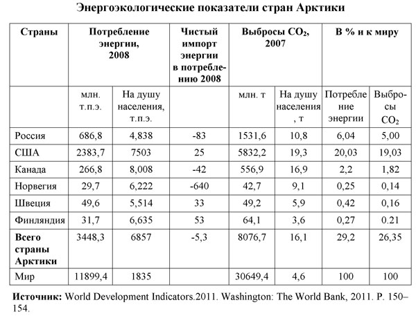 Примером частного проявления системной климатической проблемы стала Арктика. Так, арктические страны располагают большими запасами энергетических ресурсов, поставляют на мировой рынок значительную долю энергии (Россия, Норвегия, Канада), и в то же время являются крупными загрязнителями атмосферы (особенно США и Россия)[8].