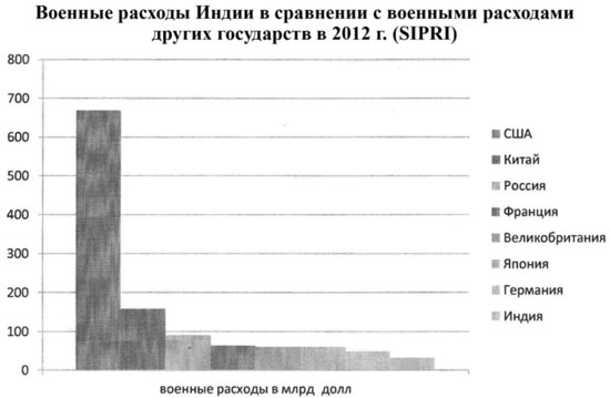 Особое значение в этой связи приобретают те национальные приоритеты и ценности, которые доминируют в правящей элите того или иного государства. Во многом именно они определяют сегодня военно-политические цели и способы и средства будущей войны для каждого субъекта ВПО. Так, на рисунке, расположенном ниже, важны не столько абсолютные суммы военных расходов, а их соотношение между отдельными государствами, которые демонстрируют именно приоритеты тех или иных правительств и правящих элит.