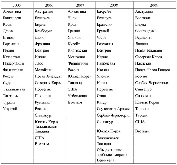 посетили в течение 2005-2009 гг.[3]