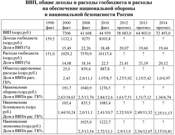 Как видно, российские расходы на национальную оборону в первом десятилетии нынешнего века не поднимались выше 2,84% в ВВП и 18,63% в расходах госбюджета и имели тенденцию к уменьшению, а расходы на национальную безопасность соответственно - 2,41 и 11,1%. В эти годы военные расходы США увеличились на 100% - с 350 до 700 млрд долл. Только в 2013 году намечено некоторое сокращение военных расходов, которое на фоне их десятилетнего роста выглядит вполне символическим. Показатели первых лет нового десятилетия таким образом отнюдь не свидетельствуют об их росте[9], о чем так много говорят последние два года. При этом следует учитывать, что многие годы в России происходило катастрофическое недофинансирование ОПК. Как, впрочем, и сегодня.