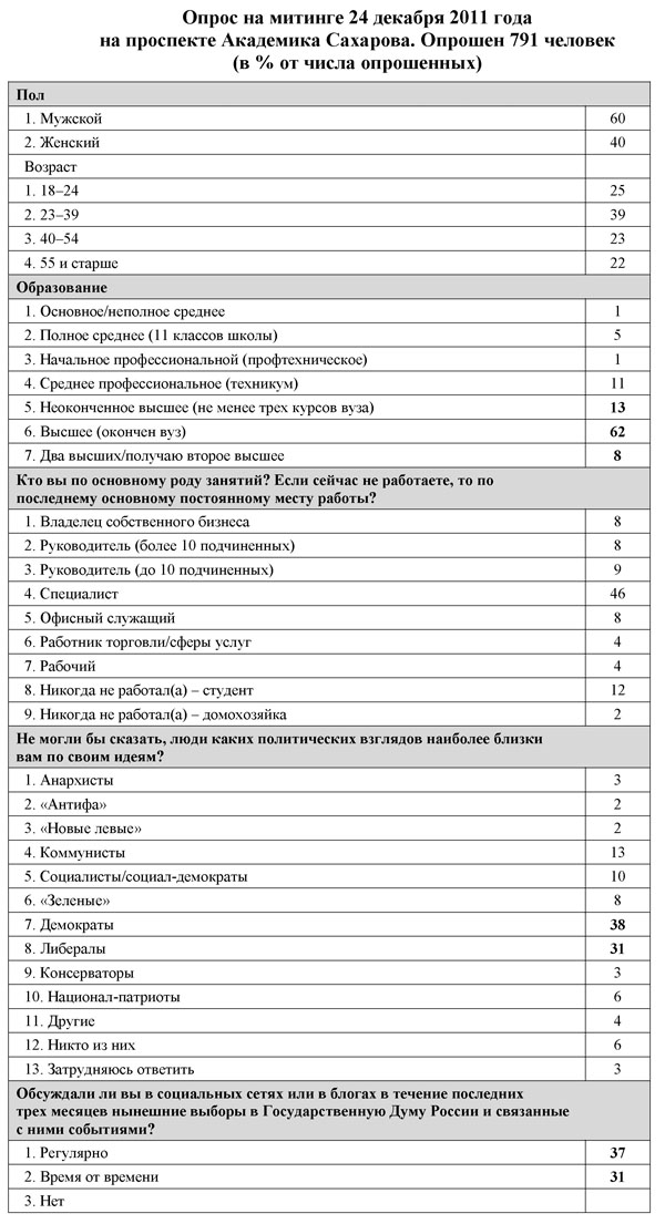 [7] Самарина А. 70% митингующих - либералы по убеждениям // Независимая газета. 2011. 27 декабря. С. 3.