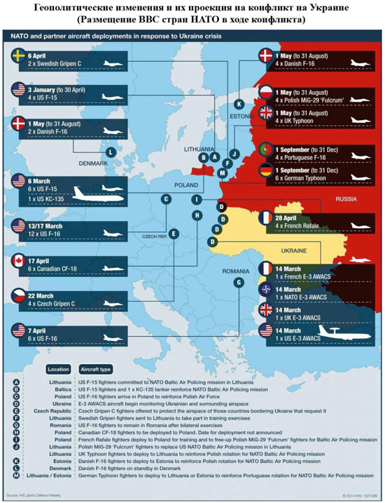 Так, в ходе войны на Украине 2014 года военно-политической обстановке (ВПО) и военно-стратегической обстановке (СО) произошли радикальные изменения, которые были зафиксированы в сентябре 2014 года на саммите НАТО. В соответствии с концепцией сетецентрической войны эти изменения охватили все области: