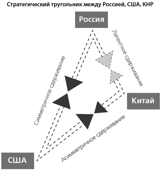 В этой связи вызывают сомнения любые попытки построить многосторонние силовые "фигуры", иллюстрирующие ВПО в мире, которые игнорируют главную особенность - противоборство локальных цивилизаций. Одной из таких попыток, например, является попытка построения "треугольника" взаимоотношений между США, КНР и Россией, предпринятая А. Арбатовым и В. Дворкиным.