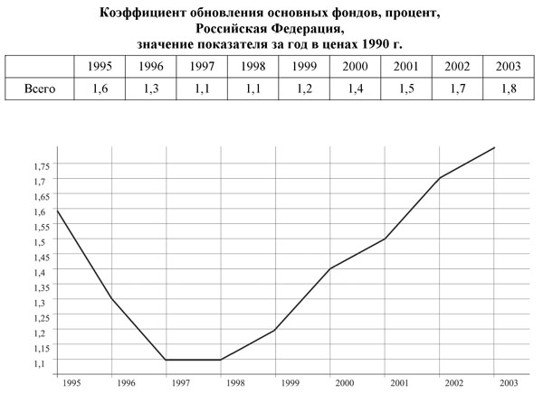 Аналогичная ситуация возникает и с традиционными отраслями обрабатывающей промышленности, которые в 90-е годы фактически разрушались. Это отчетливо видно из официальных данных Росстата, регулярно публикующего данные о коэффициенте обновления основных фондов[7].