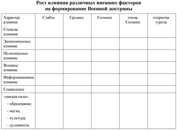 - в-четвертых, прямо зависят от масштабов и полноты выделяемых на цели и задачи Военной доктрины национальных ресурсов.