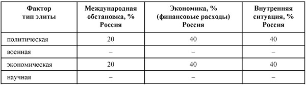 - влияние военной и научной элиты ничтожно и его можно вообще не учитывать;