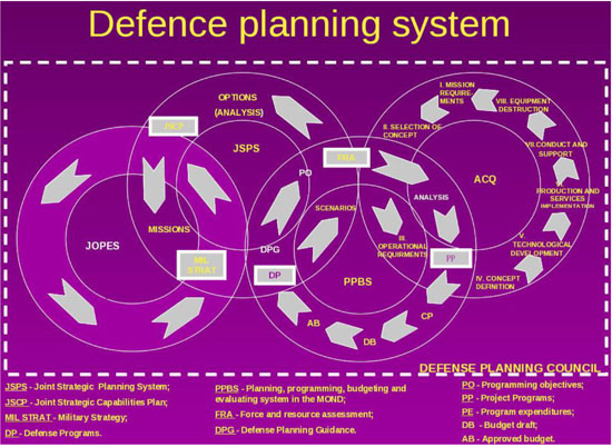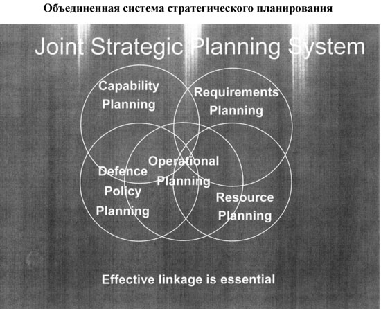 Так, Объединенная система стратегического планирования в области национальной безопасности представляет собой именно систему, состоящую из нескольких элементов стратегического планирования (оперативного, ресурсного, оборонного и т.д.), где взаимосвязь этих элементов имеет огромное значение. В докладе Центра НАТО полковник профессор Каталин-Мариус Тарнакоп представил такую взаимосвязь следующим образом.