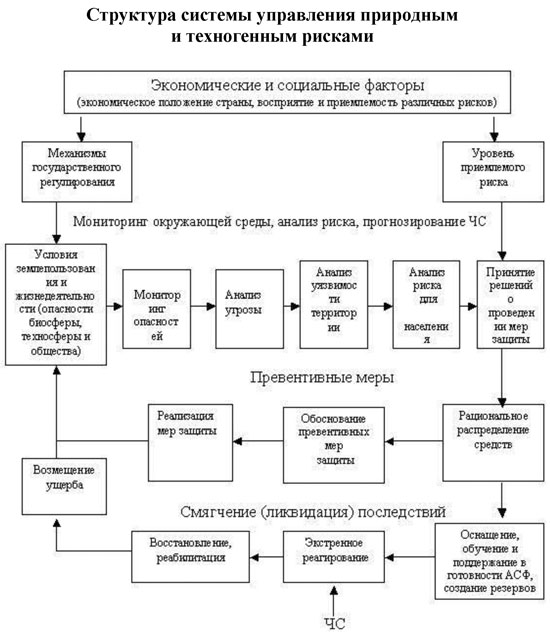 Структура системы управления природными и техногенными рисками в масштабе страны или на конкретной территории имеет вид, изображенный на рис.