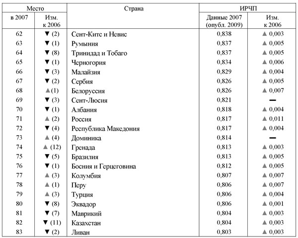 По данным Отчёта о человеческом развитии 2009 из Программы развития ООН, составленный на основе данных 2007 года и опубликованный 5 октября 2009 г., Россия относится к странам с высоким ИРЧП (71 место из 182):