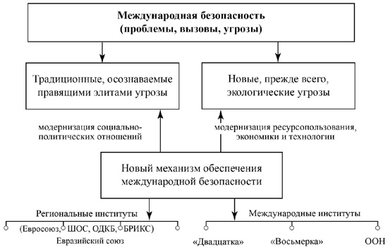 Важно подчеркнуть, что этот рисунок отражает как принципиально новую схему международной безопасности, так и национальные системы безопасности, которые органически включены в международную систему и ни в коем случае не подменяются ей.