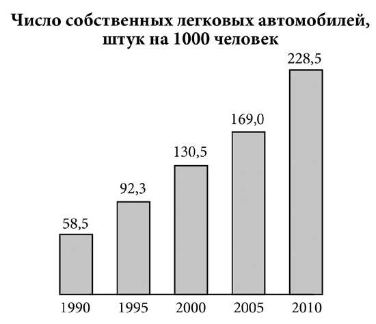 Другая сторона вопроса - качество тех, кто производит и потребляет эти Интернет-продукты, т.е. прежде всего качество национального человеческого потенциала. Поэтому общий вывод для России, применительно к XXI веку, таков: будущий образ России формируется прежде всего определенными (креативными) социальными группами и доминирующей в идеологии частью элиты. Это могут (и бывают в разное время) быть самые неожиданные сочетания, которые, как показывает российская история, оказывают огромное влияние на политику России. От И. Грозного до М. Горбачева и В. Путина мы видим насколько сильна роль личности и ее окружения в истории России, как иногда представляемые слабыми социальные группы становятся движущей силой реформ, революций и социальных катастроф. Что и показала "арабская весна" и протесты в России в 2011 году. Похоже, что правящая элита России пока недооценивает численность среднего класса в России, его влияние и роль в социальной политике. Так, говоря о 15-20% - доля среднего класса в населении страны - можно, конечно, твердить о незначительной роли, ставить задачу его роста на будущее, но сегодня пора уже понимать, что не этими процентами определяется его роль в экономике и политической жизни страны. Например, рост числа пользователей автомобилями почти в 5 раз за последние 20 лет говорит о том, что основные проблемы, связанные с автотранспортом, становятся прежде всего проблемами среднего класса[8].