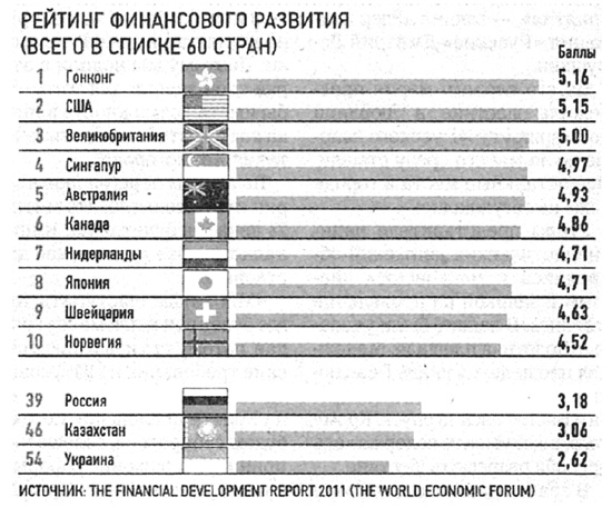 Необходимо отдавать отчет о реальных военных и невоенных возможностях России, которые не изменяются количественными показателями, а являются относительными критериями. Так, в период финансового кризиса 2008-2011 годов имели огромное значение не только ЗВР и внешний долг, но и реальное положение институтов, в том числе институтов НЧП. Объективные рейтинги свидетельствуют, что по большинству качественных показателей НЧП и институтов развития Россия качественно, в десятки раз, отстает от развитых стран, что хорошо видно на примере рейтинга финансового развития: если показатели ЗВР, внешнего долга и темпов роста ВВП у России вполне оптимистичны, то качественные - глубоко пессимистичны[5].