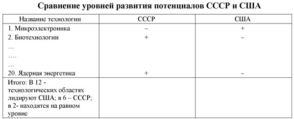 Напомню, что в США после Второй мировой войны существовала практика, когда важнейшие документы обеспечения национальной безопасности базировались на сравнении и сопоставлении научно-технических и технологических потенциалов США и СССР по важнейшим 19-21 направлениям НТП.
