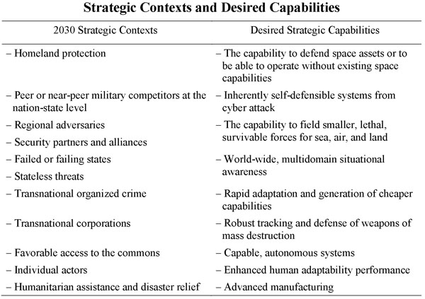 В настоящее время в США определенно и четко увязывают "стратегический контекст" с потребностями в ВиВТ, что хорошо видно из следующей таблицы[4].